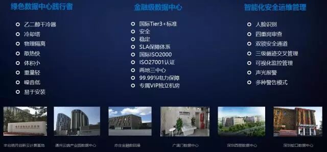 作为中国最早的IDC服务商之一,企商在线是一家服务过银行、证券、保险、基金、P2P等泛金融领域全案例的数据中心提供商,数据中心的风火水电基础设施、网络安全、运维体系3个维度都达到金融级数据中心的要求。